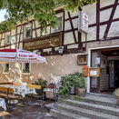 Danach begeben wir uns auf den Rundwanderweg 2. Das Weinturmfestival ignorieren wir. In Wiebelsheim rasten wir bei einem kautzigen Wirt.